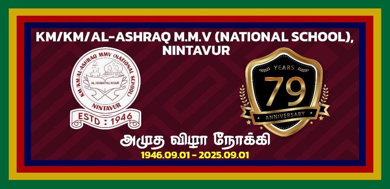 Welcome to the official website of KM/KM/AL-ASHRAQ M.M.V (NATIONAL SCHOOL) - Nintavur! Established in 1946, we are a premier educational institution dedicated to fostering academic excellence and holistic development. Located in the heart of Nintavur, our school boasts a rich history, vibrant community, and a commitment to nurturing the leaders of tomorrow. Explore our site to learn more about our proud heritage, dynamic learning environment, and the exceptional opportunities that await our students.